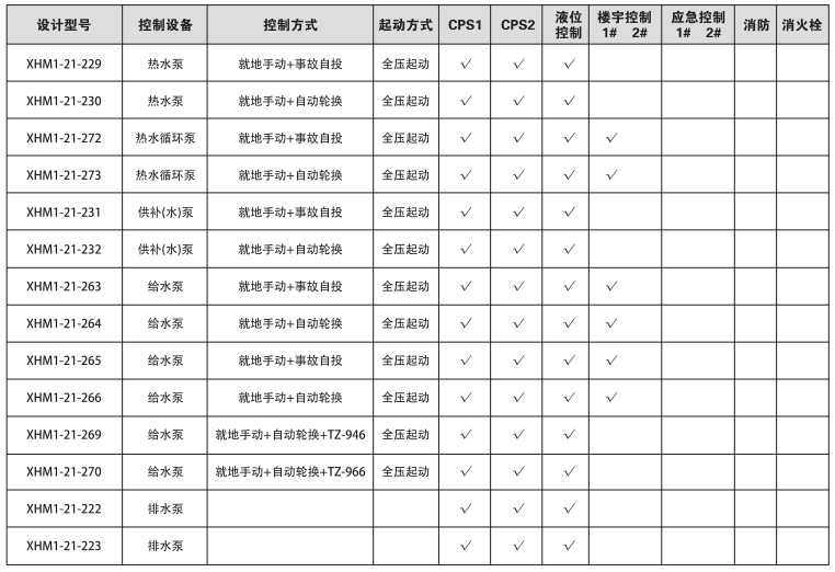 2 | XHM1-11 | 单台风机或水泵控制(单路控制) |