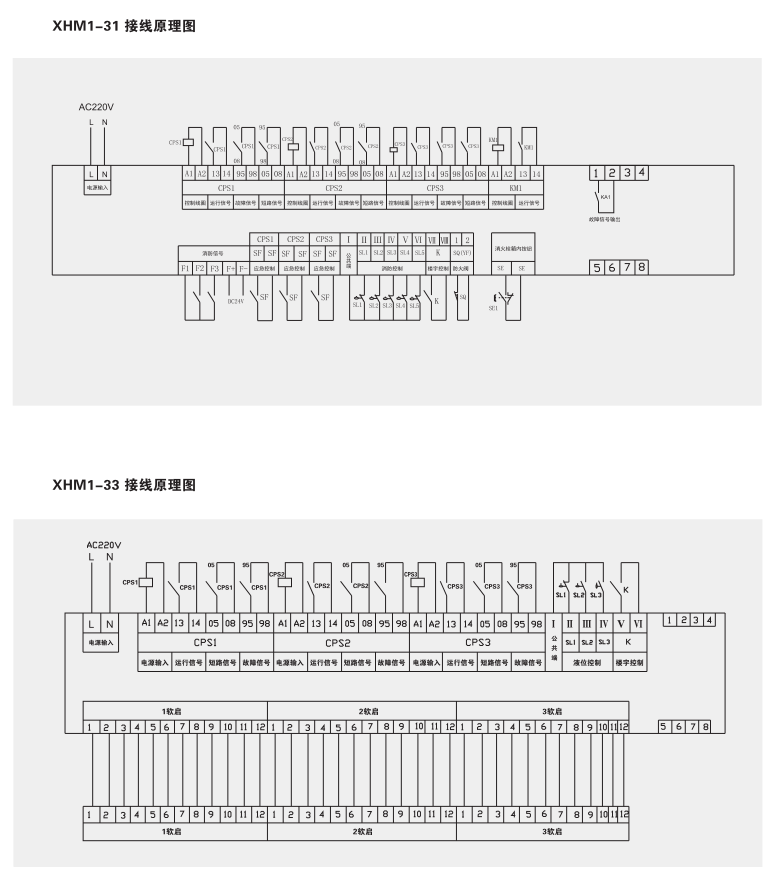6 | XHM1-22 | 两台水泵星三角起停控制、自耦降压启动控制 |