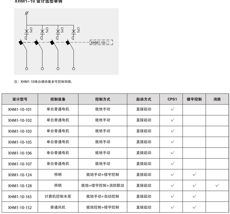 1 | XHM1-10 | 单台风机或水泵控制(单路基本控制,可一拖四控制) |